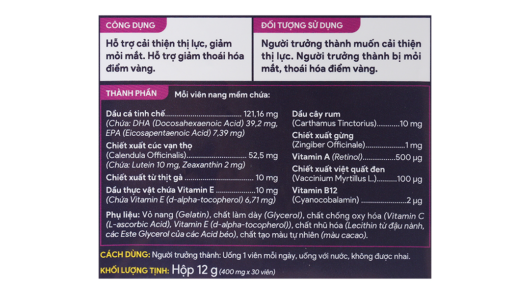 - Hỗ trợ giảm thoái hóa điểm vàng.