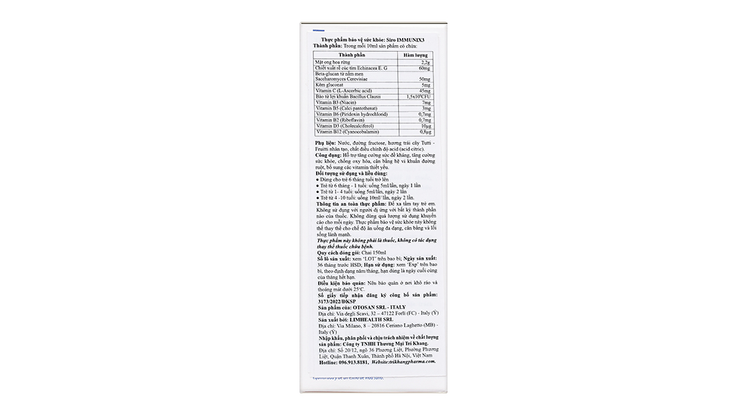 Siro Immunix3 Children hỗ trợ tăng cường đề kháng chai 150ml