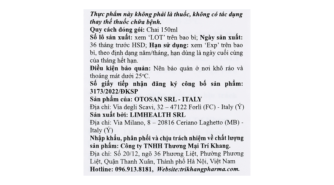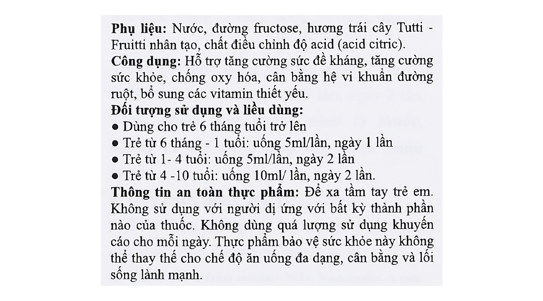 Đối tượng sử dụngDùng cho trẻ 6 tháng tuổi trở lên