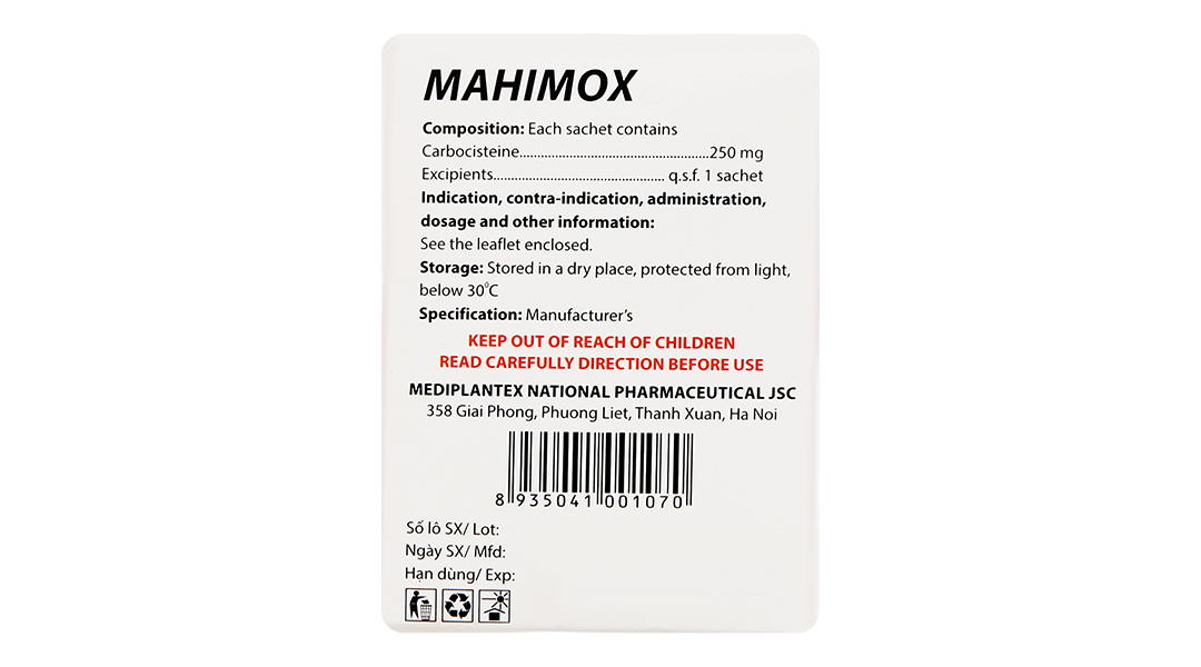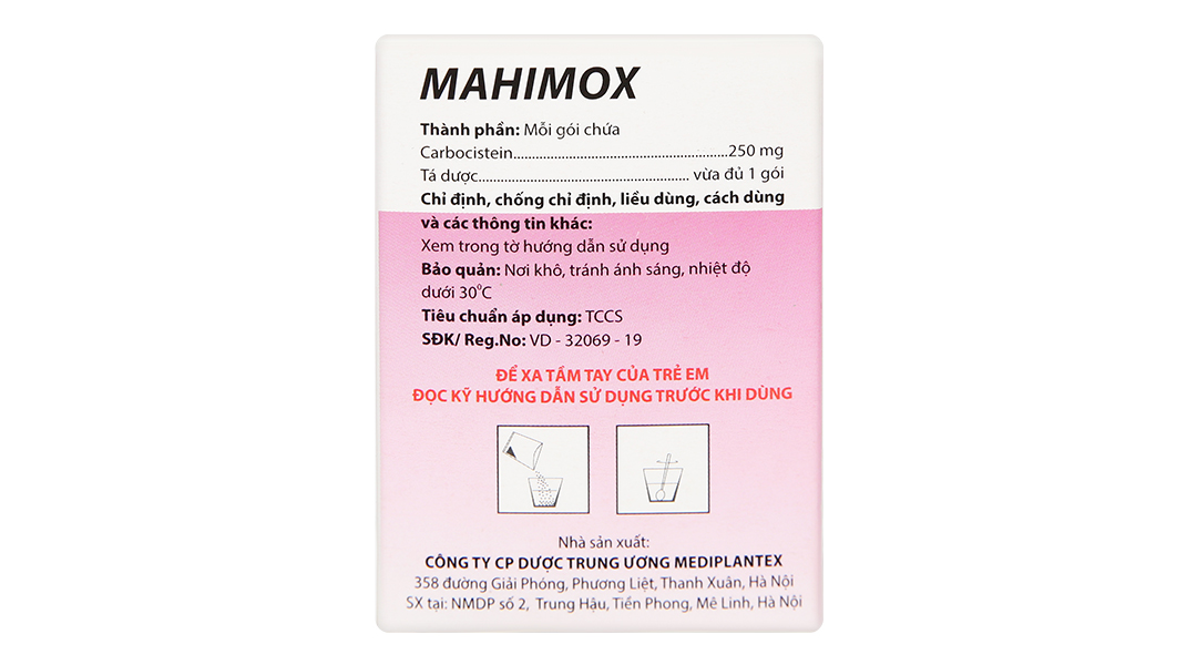 Cách dùng: Hòa tan thuốc trong nước trước khi uống.
