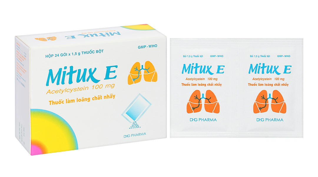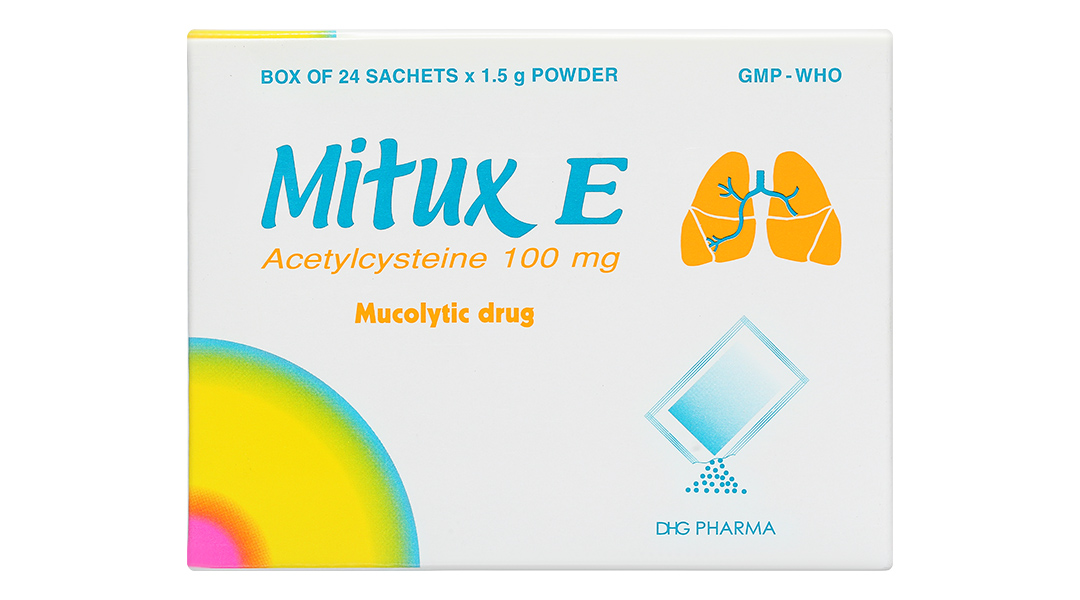 Thuốc bột Mitux E 100mg làm tiêu nhầy, loãng đờm (24 gói x 1.5g)