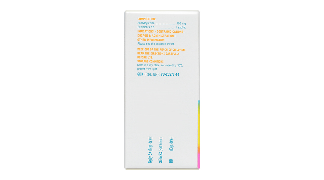 Công dụngLàm loãng đờm, tiêu nhầy trong bệnh lý hô hấp như viêm phế quản, viêm mũi, viêm xoang,...