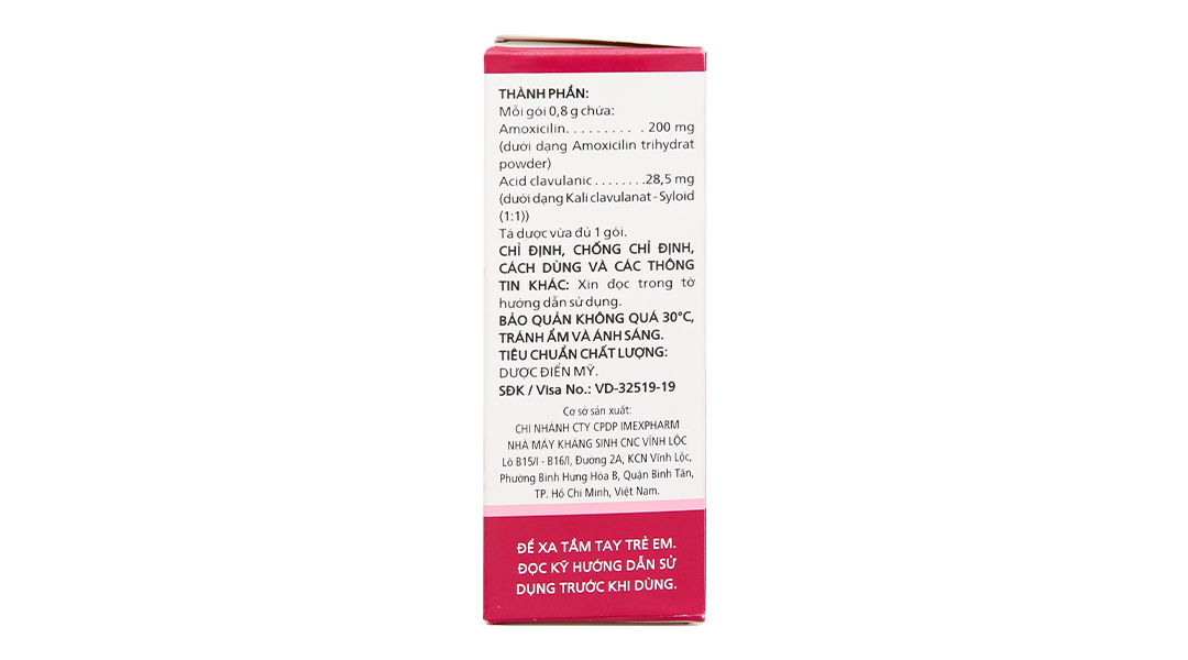 + Acid clavulanic (dưới dạng Kali clavulanate – Syloid (1:1)) 28,5mg.