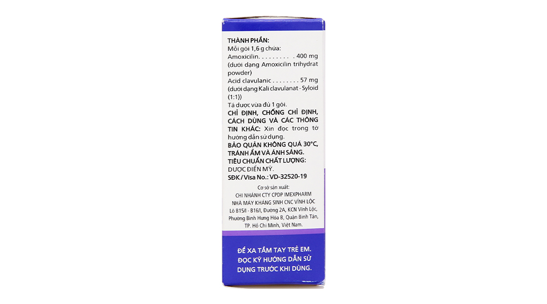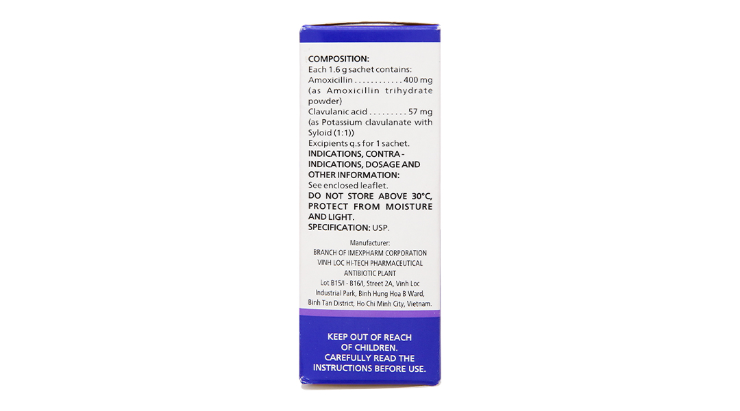 + Amoxicilin (dưới dạng Amoxicilin trihydrat powder) 400mg.