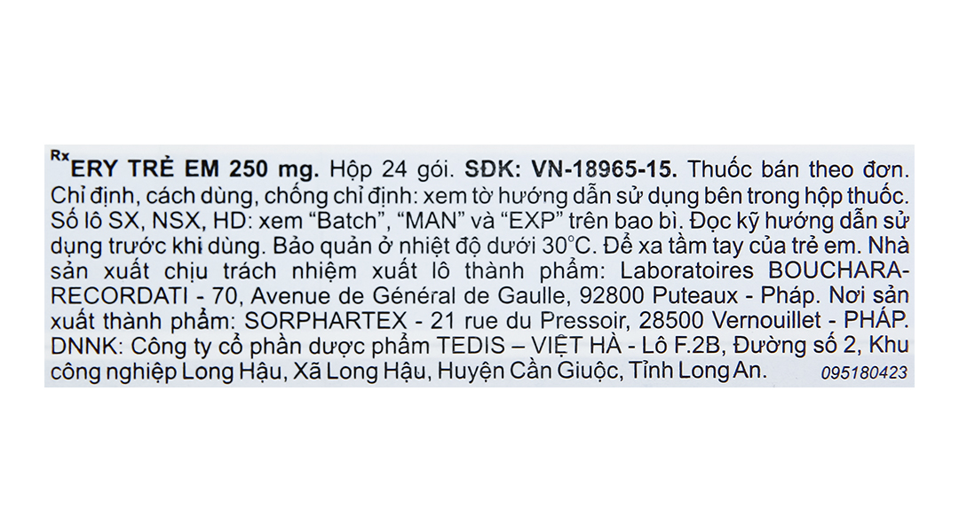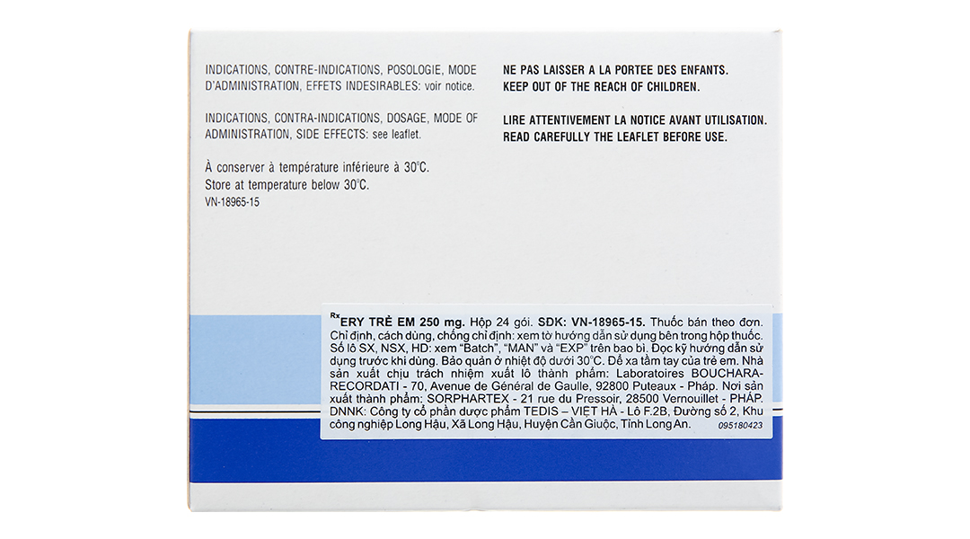 Thuốc bột Ery Children 250mg trị nhiễm khuẩn (24 gói x 2.375g)