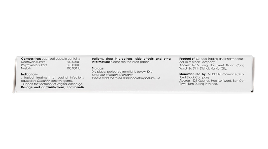 Hoạt chấtPolymyxin B sulphat, Nystatin, Neomycin sulphat