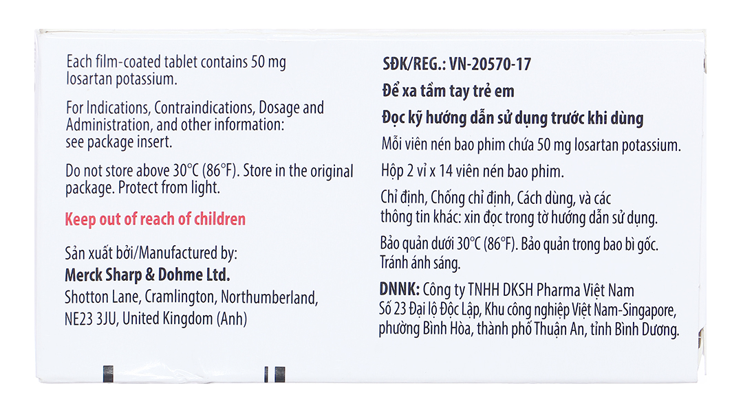 Mỗi viên nén COZAAR 50mg dùng đường uống chứa hoạt chất tương ứng 50mg losartan kali.