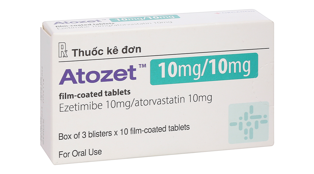 - Hoạt chất: ATOZET viên nén bao phim dùng đường uống chứa 10 mg ezetimibe và 10,9 mg atorvastatin calci, tương đương với 10 mg atorvastatin (ATOZET 10 mg/10 mg).