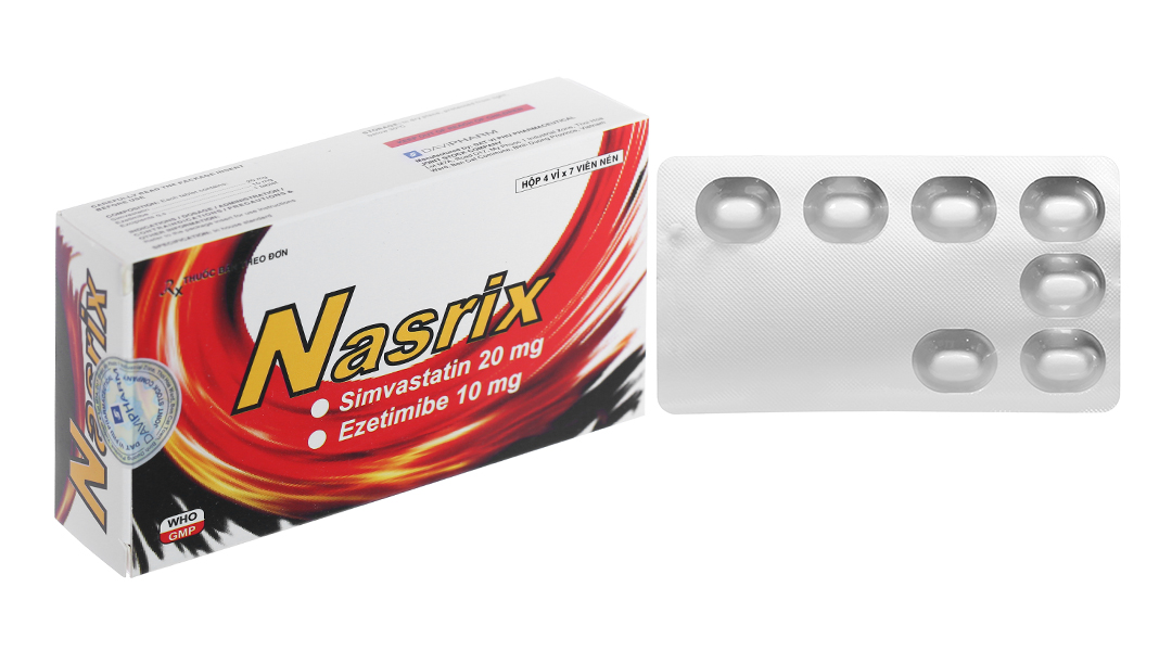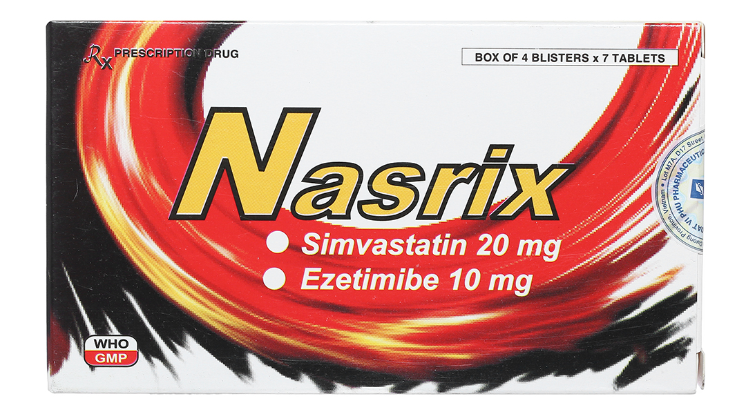 Viên NASRIX là dạng viên kết hợp chứa simvastatin 20 mg/ ezetimibe 10 mg, được sử dụng để thay thế viên simvastatin 20 mg và ezetimibe 10 mg riêng lẻ hoặc được dùng để phối hợp thêm ezetimibe khi điều trị bằng simvastatin 20 mg không đạt được mục tiêu điều trị. NASRIX không thích hợp với chỉ định điều trị với liều lượng khác.