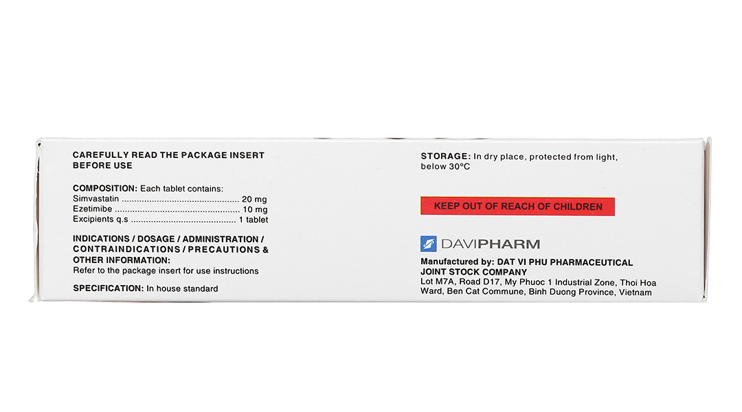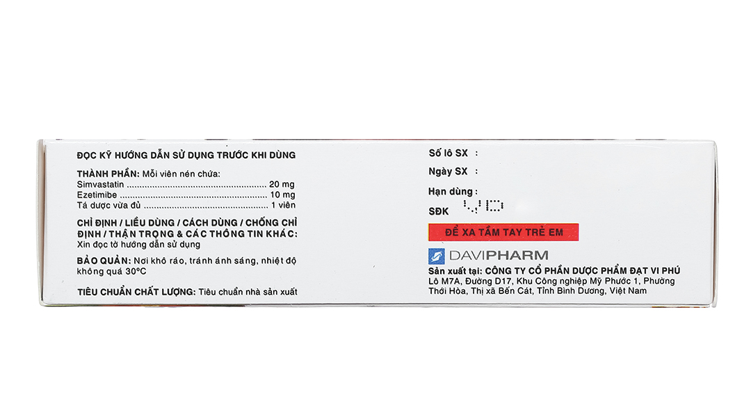 Hoạt chất: Simvastatin 20mg, Ezetimibe 10mg