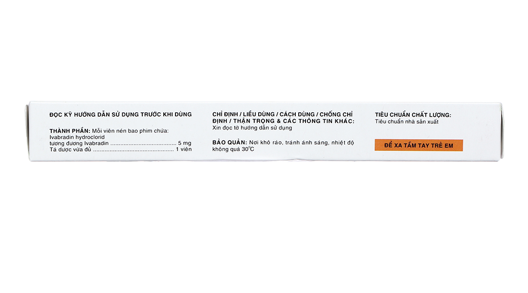 – Thận trọng khi sử dụngLoạn nhịp tim Ivabradin không hiệu quả trong điều trị hoặc phòng ngừa loạn nhịp tim và dường như mất tác dụng khi xảy ra loạn nhịp nhanh (như nhịp nhanh thất hoặc trên thất). Do đó không nên dùng ivabradin ở bệnh nhân rung tâm nhĩ hoặc các loạn nhịp tim khác có ảnh hưởng đến chức năng nút xoang. Bệnh nhân điều trị với ivabradin phải được theo dõi lâm sàng thường xuyên để phát hiện rung tâm nhĩ (liên tục hoặc kịch phát), nên theo dõi điện tâm đồ nếu có dấu hiệu trên lâm sàng. Nguy cơ rung tâm nhĩ cao hơn ở bệnh nhân suy tim mạn tính điều trị với Ivabradin. Rung tâm nhĩ thường gặp hơn ở bệnh ở bệnh nhân sử dụng đồng thời amiodaron hoặc thuốc chống loạn nhịp nhóm I. Theo dõi chặt chẽ bệnh nhân suy tim mạn tính với rối loạn dẫn truyền nội thất (phong bế bó nhánh trái, phong bế bó nhánh phải) và mất đồng bộ tâm thất. Bệnh nhân bloc nhĩ thất độ 2 Không khuyên dùng ivabradin ở bệnh nhân bloc nhĩ thất độ 2. Bệnh nhân nhịp tim chậm Không sử dụng ivabradin ở bệnh nhân có nhịp tim lúc nghỉ dưới 60 nhịp/ phút trước khi điều trị. Trong quá trình điều trị nên điều chỉnh giảm liều nếu nhịp tim lúc nghỉ thường xuyên dưới 50 nhịp/ phút hoặc bệnh nhân có triệu chứng liên quan đến chậm nhịp tim như chóng mặt, mệt mỏi, giảm huyết áp. Nên ngừng điều trị nếu nhịp tim vẫn duy trì dưới 50 nhịp/ phút hoặc nhịp tim chậm kéo dài. Phối hợp với các thuốc chẹn kênh calci Không nên phối hợp ivabradin với các thuốc chẹn kênh calci làm giảm nhịp tim như verapamil hoặc diltiazem. Không có dữ liệu về an toàn khi phối hợp ivabradin với các nitrat và các thuốc chẹn kênh calci dihydropyridin như amlodipin. Suy tim mạn tính Phải ổn định tình trạng suy tim trước khi điều trị với ivabaradin. Sử dụng thận trọng ở bệnh nhân suy tim độ IV theo NYHA do thiếu dữ liệu ở nhóm bệnh nhân này. Sốc Không sử dụng ivabradin ngay sau khi xảy ra sốc. Ảnh hưởng thị giác Ivabradin ảnh hưởng đến chức năng của võng mạc. Cho đến nay vẫn chưa có bằng chứng tác dụng có hại của thuốc trên võng mạc. Nên ngừng thuốc nếu bất kỳ tổn thương thị giác nào xảy ra. Nên thận trọng ở bệnh nhân viêm võng mạc sắc tố. Bệnh nhân giảm huyết áp Chưa có đầy đủ dữ liệu ở bệnh nhân giảm huyết áp nhẹ tới trung bình, do đó nên thận trọng ở những bệnh nhân này. Chống chỉ định ivabradin ở bệnh nhân giảm huyết áp nặng (< 90/50 mmHg). Bệnh nhân bị hội chứng QT bẩm sinh hoặc đang điều trị với thuốc có khả năng kéo dài QT Không nên sử dụng ivabradin ở bệnh nhân bị hội chứng QT bẩm sinh hoặc đang điều trị với thuốc có khả năng kéo dài QT. Nếu cần thiết phải phối hợp, phải theo dõi tim chặt chẽ. Để xa tầm tay trẻ em. – Thai kỳ và cho con búKhông sử dụng ivabradin cho phụ nữ có thai và cho con bú. – Khả năng lái xe và vận hành máy mócThuốc không ảnh hưởng đến khả năng lái xe và vận hành máy móc. Tuy nhiên, ivabradin có thể gây đom đóm mắt thoáng qua khi có sự thay đổi đột ngột về cường độ ánh sáng, đặc biệt khi lái xe ban đêm. Vì vậy nên thận trọng. – Tương tác thuốc Chống chỉ định phối hợp ivabradin với những thuốc có khả năng ức chế CYP3A4 như thuốc kháng nấm azol (ketoconazol, itraconazol), kháng sinh nhóm macrolid (clarithromycin, erythromycin uống, josamycin, telithromycin), thuốc ức chế HIV protease (nelfinavir, ritonavir) và nefazodon. Ketoconazol (200 mg một lần/ ngày) và josamycin (1 g x 2 lần/ ngày) làm tăng nồng độ huyết tương trung bình của ivabradin lên 7 – 8 lần. Không nên phối hợp ivabradin với những thuốc có khả năng kéo dài QT như các thuốc tim mạch (quinidin, disopyramid, bepridil, sotalol, ibutilid, amiodaron), không phải thuốc tim mạch (pimozid, ziprasidon, sertindol, mefloquin, halofantrin, pentamidin, cisaprid, erythromycin tiêm tĩnh mạch). Thận trọng khi phối hợp: – Thuốc ức chế CYP3A4 trung bình: Khi sử dụng đồng thời ivabradin với các thuốc ức chế CYP3A4 trung bình (như fluconazol), nên bắt đầu ở liều 2,5 mg x 2 lần/ ngày nếu nhịp tim lúc nghỉ trên 60 nhịp/ phút và phải theo dõi chặt chẽ. – Nước ép bưởi: nồng độ ivabradin tăng khoảng 2 lần khi dùng chung với nước ép bưởi. Do đó không nên dùng nước ép bưởi khi điều trị với thuốc. – Thuốc cảm ứng CYP3A4: Thuốc cảm ứng CYP3A4 (như rifampicin, barbiturat, phenytoin, St John’s wort) có thể làm giảm nồng độ và tác dụng ivabradin. Có thể phải điều chỉnh liều dùng ivabradin. St John’s wort làm giảm một nửa nồng độ ivabradin, nên tránh phối hợp. |
