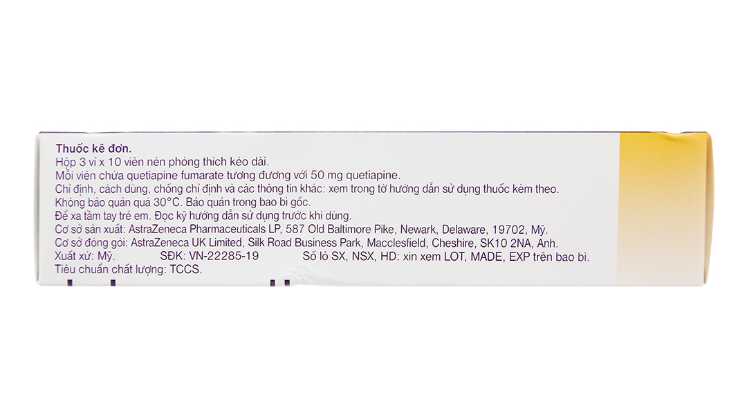 Seroquel XR 50mg trị bệnh tâm thần phân liệt, rối loạn lưỡng cực (3 vỉ x 10 viên)