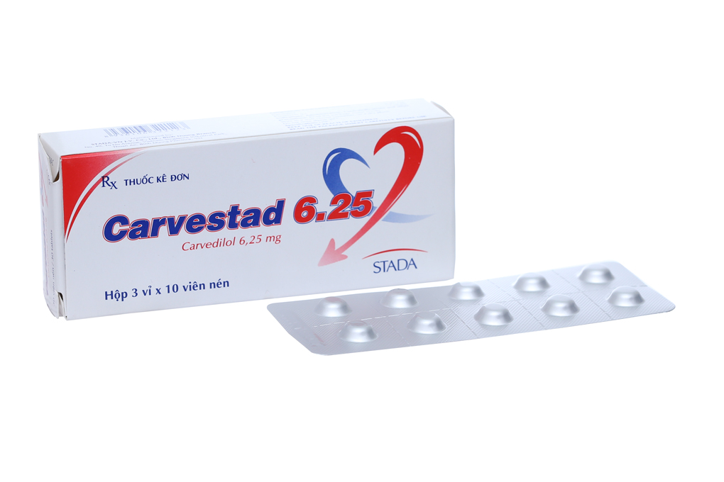 Liều khởi đầu 3,125mg x 2 lần/ ngày, dùng chung với thức ăn để làm giảm nguy cơ hạ huyết áp.