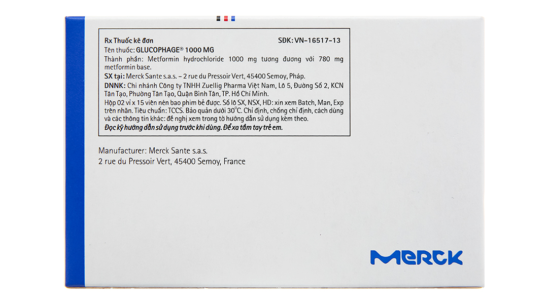 Glucophage 1000mg trị đái tháo đường (2 vỉ x 15 viên)