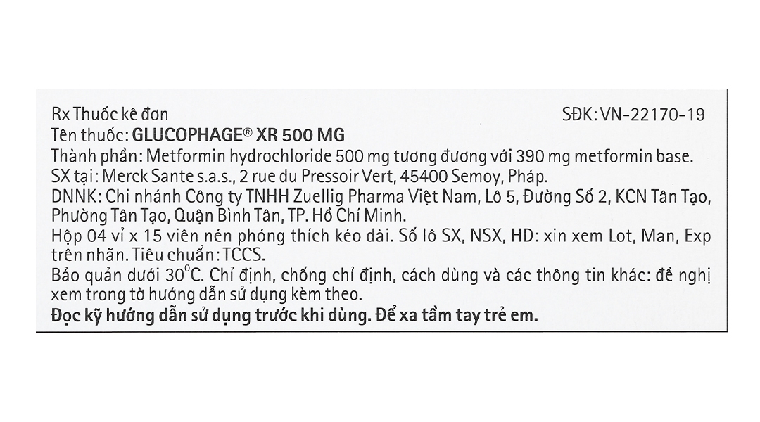 – Thận trọng khi sử dụngNhiễm acid lactic Quá trình giám sát hậu mãi đã ghi nhận những ca nhiễm acid lactic liên quan đến metformin, bao gồm cả trường hợp tử vong, giảm thân nhiệt, tụt huyết áp, loạn nhịp chậm kéo dài. Khởi phát của tình trạng nhiễm acid lactic liên quan đến metformin thường không dễ phát hiện, kèm theo các triệu chứng không điển hình như khó chịu, đau cơ, suy hô hấp, lơ mơ và đau bụng. Nhiễm acid lactic liên quan đến metformin được đặc trưng bằng nồng độ lactate tăng lên trong máu (>5 mmol/L), khoảng trống anion (mà không có bằng chứng của keto niệu hoặc keto máu), tăng tỷ lệ lactate/pyruvate và nồng độ metformin huyết tương nói chung tăng >5 μg/mL. Yếu tố nguy cơ của nhiễm acid lactic liên quan đến metformin bao gồm suy thận, sử dụng đồng thời với một số thuốc nhất định (ví dụ các chất ức chế carbonic anhydrase như topiramate), từ 65 tuổi trở lên, có thực hiện xét nghiệm chẩn đoán hình ảnh sử dụng thuốc cản quang, phẫu thuật và thực hiện các thủ thuật khác, tình trạng thiếu oxy (ví dụ suy tim suy huyết cấp), uống nhiều rượu và suy gan. Các biện pháp giảm thiểu nguy cơ và xử trí nhiễm acid lactic liên quan đến metformin ở nhóm bệnh nhân có nguy cơ cao được trình bày chi tiết trong tờ hướng dẫn sử dụng thuốc (xem mục Liều lượng và cách sử dụng, Chống chỉ định, Những lưu ý đặc biệt và cảnh báo khi dùng thuốc, Tương tác thuốc). Nếu có nghi ngờ nhiễm acid lactic liên quan đến metformin, nên ngừng sử dụng metformin, nhanh chóng đưa bệnh nhân đến bệnh viện và tiến hành các biện pháp xử trí ở những bệnh nhân đã điều trị với metformin, đã được chẩn đoán nhiễm acid lactic hoặc nghi ngờ có khả năng cao bị nhiễm acid lactic, khuyến cáo nhanh chóng thẩm tách máu để điều chỉnh tình trạng nhiễm acid và loại bỏ metformin bị tích lũy (metformin hydroclorid có thể thẩm tách được với độ thanh thải đến 170 mL/phút trong điều kiện huyết động lực tốt). Thẩm tách máu có thể là đảo ngược triệu chứng và hồi phục. Hướng dẫn cho bệnh nhân và người nhà về các triệu chứng của nhiễm acid lactic và, nếu những triệu chứng này xảy ra, cần ngừng thuốc và báo cáo những triệu chứng này cho bác sỹ. Đối với mỗi yếu tố làm tăng nguy cơ nhiễm acid lactic liên quan đến metformin, những khuyến cáo nhằm giúp giảm thiểu nguy cơ và xử trí tình trạng nhiễm acid lactic liên quan đến metformin cụ thể như sau: Suy thận Những ca nhiễm acid lactic liên quan đến metformin trong quá trình giám sát thuốc hậu mãi xảy ra chủ yếu trên những bệnh nhân bị suy thận nặng. Nguy cơ tích lũy metformin và nhiễm acid lactic liên quan đến metformin tăng lên theo mức độ nghiêm trọng của suy thận bởi metformin được thải trừ chủ yếu qua thận. Khuyến cáo lâm sàng dựa trên chức năng thận của bệnh nhân bao gồm (xem mục Liều lượng và cách sử dụng): – Trước khi khởi đầu điều trị với metformin cần đo mức độ lọc cầu thận ước tính (eGFR). – Chống chỉ định metformin trên bệnh nhân có eGFR dưới 30 mL/phút/1,73 m2 (xem mục Chống chỉ định). – Metformin có thể sử dụng trên bệnh nhân suy thận có eGFR trong khoảng 30 – 59 mL/phút/1,73m2 chỉ trong trường hợp không có các điều kiện khác có thể làm tăng nguy cơ nhiễm acid lactic và theo sự chỉnh liều như sau: Liều khởi đầu là 500 mg metformin hydrochlorid ngày 1 lần. Liều tối đa là 1000 mg mỗi ngày. – Thu thập dữ liệu về eGFR ít nhất 1 lần/năm ở tất cả các bệnh nhân sử dụng metformin, ở bệnh nhân có nguy cơ tiến triển suy thận (ví dụ như người cao tuổi), chức năng thận nên được đánh giá thường xuyên hơn. – Ở bệnh nhân đang sử dụng metformin và có eGFR giảm xuống dưới 45 mL/phút/1,73 m2, đánh giá nguy cơ-lợi ích của việc tiếp tục phác đồ. Tương tác thuốc Sử dụng đồng thời metformin với một số thuốc có thể làm tăng nguy cơ nhiễm acid lactic liên quan đến metformin: những thuốc làm suy giảm chức năng thận dẫn tới những thay đổi đáng kể về mặt huyết động, ảnh hưởng tới cân bằng acid-base hoặc làm tăng tích lũy metformin (xem mục Tương tác thuốc). Vì vậy cần cân nhắc theo dõi bệnh nhân thường xuyên hơn. Bệnh nhân từ 65 tuổi trở lên Nguy cơ nhiễm acid lactic liên quan đến metformin tăng lên theo tuổi của bệnh nhân bởi bệnh nhân lớn tuổi có khả năng bị suy gan, suy thận, suy tim cao hơn những bệnh nhân trẻ tuổi hơn. Cần đánh giá chức năng thận thường xuyên hơn đối với bệnh nhân Thực hiện các xét nghiệm chẩn đoán có sử dụng thuốc cản quang Tiêm thuốc cản quang có chứa iod vào nội mạch ở những bệnh nhân đang điều trị metformin có thể dẫn tới suy giảm cấp tính chức năng thận và gây ra nhiễm acid lactic. Ngừng sử dụng metformin trước hoặc tại thời điểm thực hiện xét nghiệm chẩn đoán hình ảnh có sử dụng thuốc cản quang có chứa iod ở những bệnh nhân có eGFR nằm trong khoảng 30-60 mL/phút/1,73 m2, ở những bệnh nhân có ti