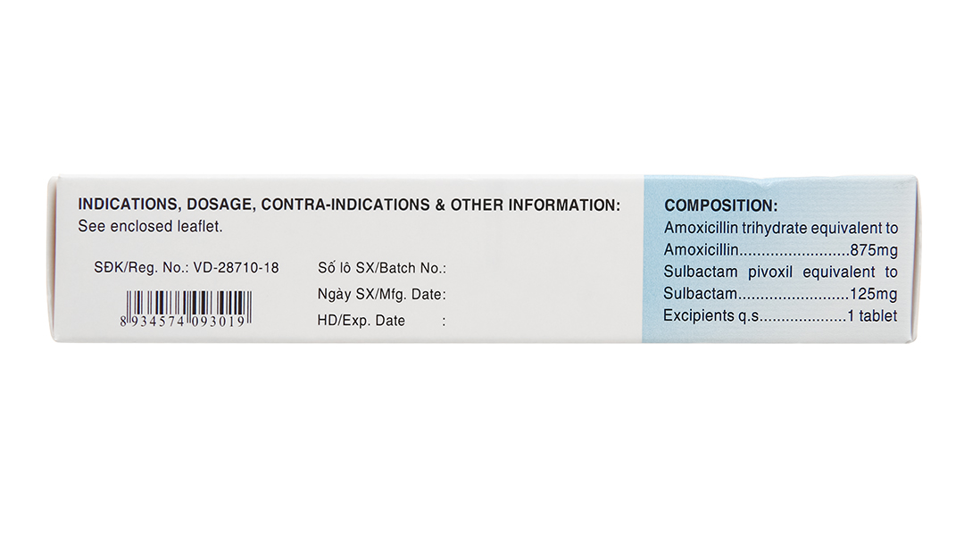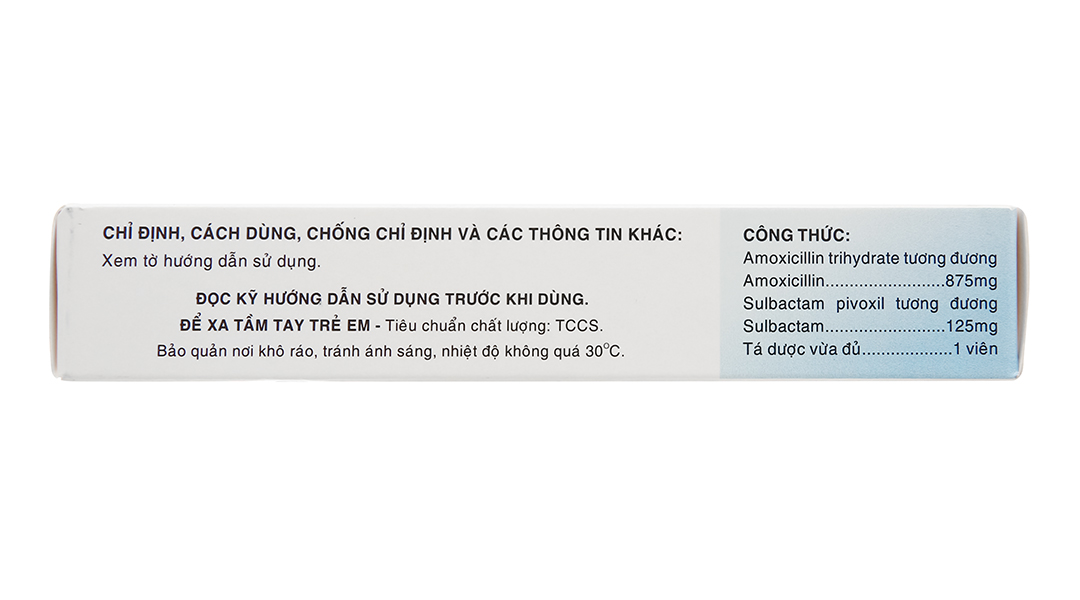 – Sulbactam pivoxil tương đương sulbactam: 125mg.