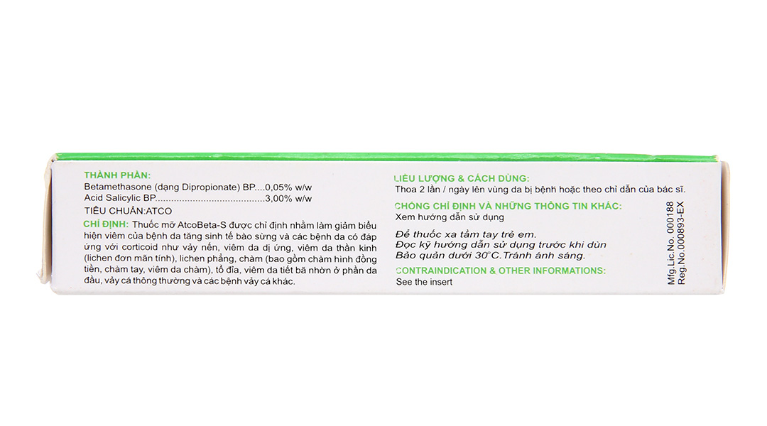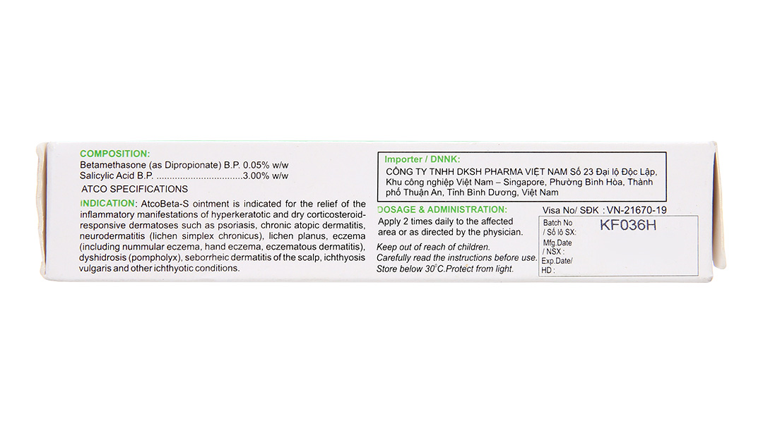 Betamethason (dạng Dipropionat) (B.P.) 0,05% w/w.