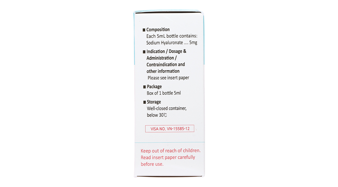 Natri hyaluronat là hoạt chất sinh học, được chiết xuất từ mào gà, có tác dụng giữ ẩm trên bề mặt giác mạc, giúp tái tạo biểu mô, nhanh chóng làm lành giác mạc bị tổn thương. Natri hyaluronat tan trong nước tạo thành dung dịch sánh trong suốt, không màu.