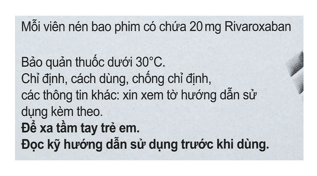 - Xarelto 20 mg: Mỗi viên nén bao phim có chứa 20 mg rivaroxaban.