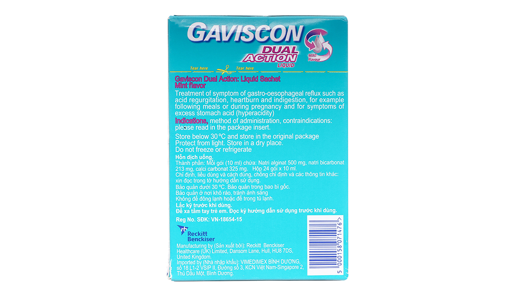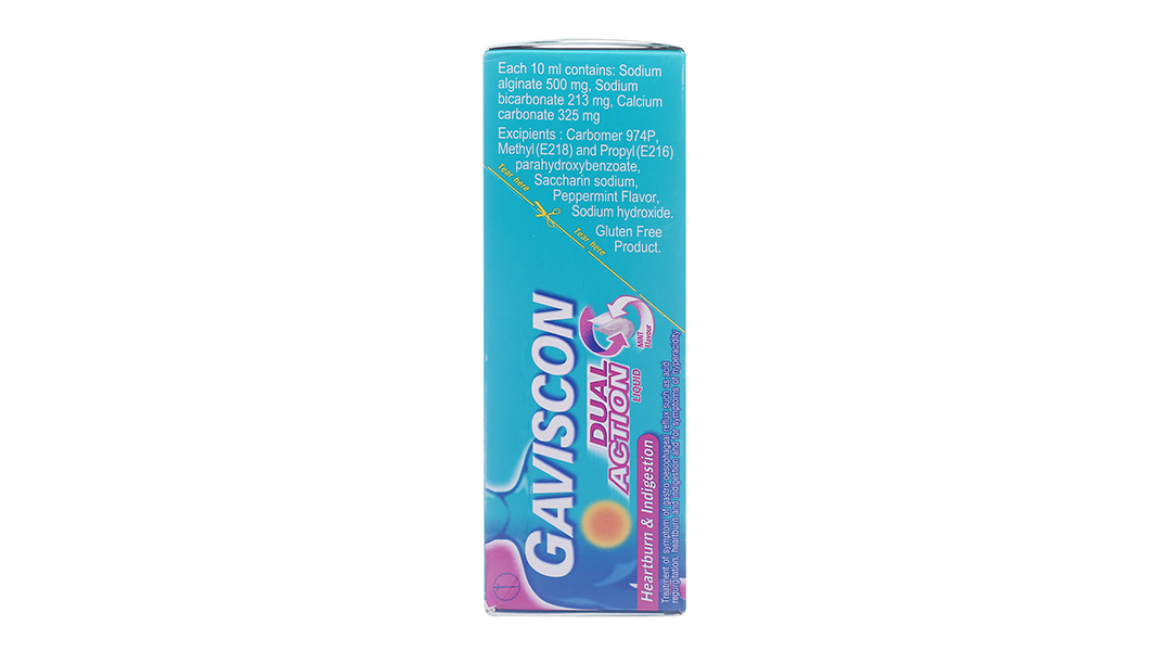 Gaviscon Dual Action điều trị các triệu chứng của trào ngược dạ dày-thực quản như ợ nóng, khó tiêu và ợ chua liên quan đến sự trào ngược như sáu bữa ăn, hoặc trong khi mang thai, hoặc các triệu chứng dư acid dạ dày.