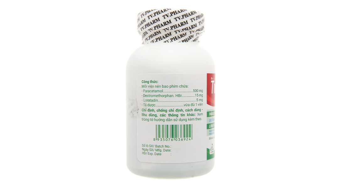 Thành phần: Paracetamol 500mg, Dextromethorphan.HBr 15mg, Loratadin 5mg.