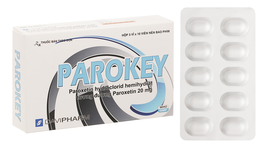 Mỗi viên nén bao phim PAROKEY 20mg chứa: Paroxetin hydroclorid hemihydrat tương đương Paroxetin 20mg.