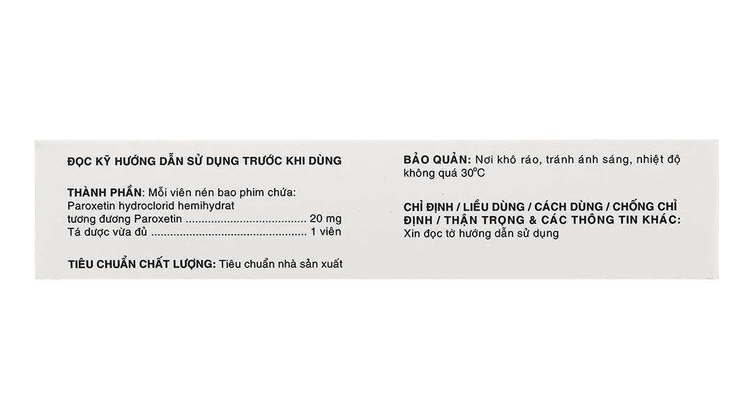 Rối loạn sau sang chấn tâm lý. Liều khuyến cáo 20 mg/ ngày, sau đó nếu không có dấu hiệu cải thiện, mỗi tuần tăng thêm 10mg, đến 50 mg/ ngày. Theo dõi đánh giá bệnh nhân định kỳ trong quá trình điều trị lâu dài.