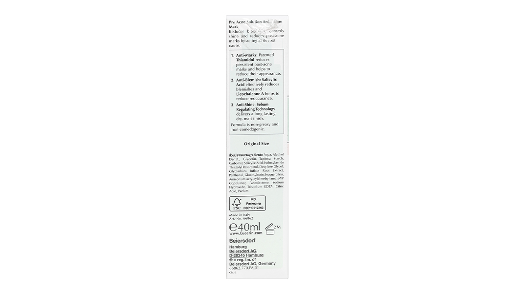Eucerin Pro Acne Solution là phát minh đột phá đến từ thương hiệu Eucerin, với tinh chất giảm thâm mụn và dưỡng sáng da dành riêng cho da mụn. Sản phẩm này được thiết kế với công thức vượt trội, kết hợp giữa các hoạt chất ưu việt giúp điều trị mụn và cải thiện tình trạng thâm mụn, mang lại làn da sáng khỏe và đều màu.