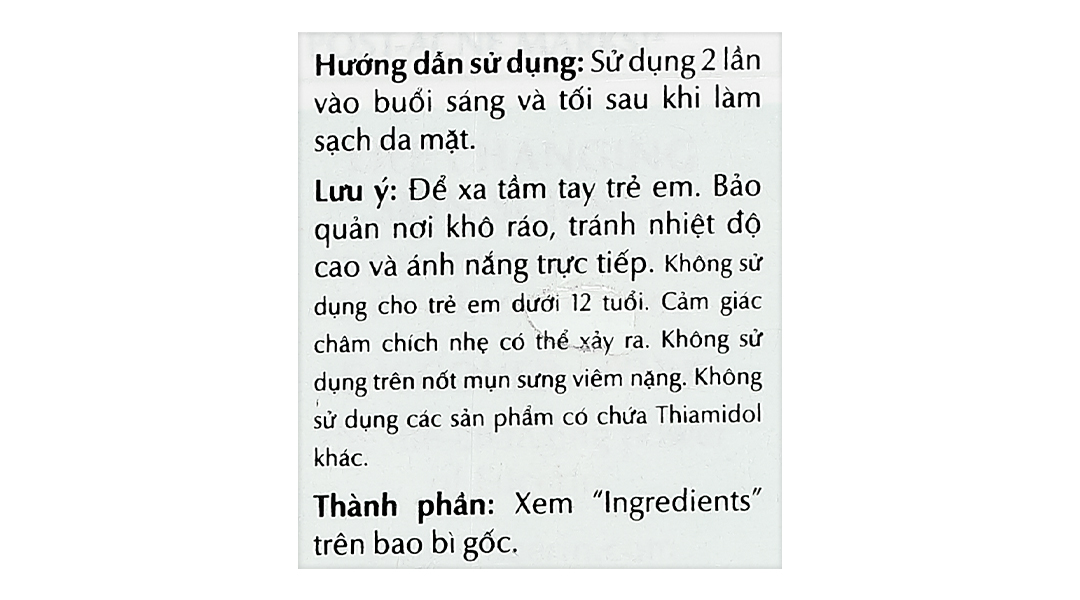 - Không sử dụng các sản phẩm có chứa Thiamidol khác.