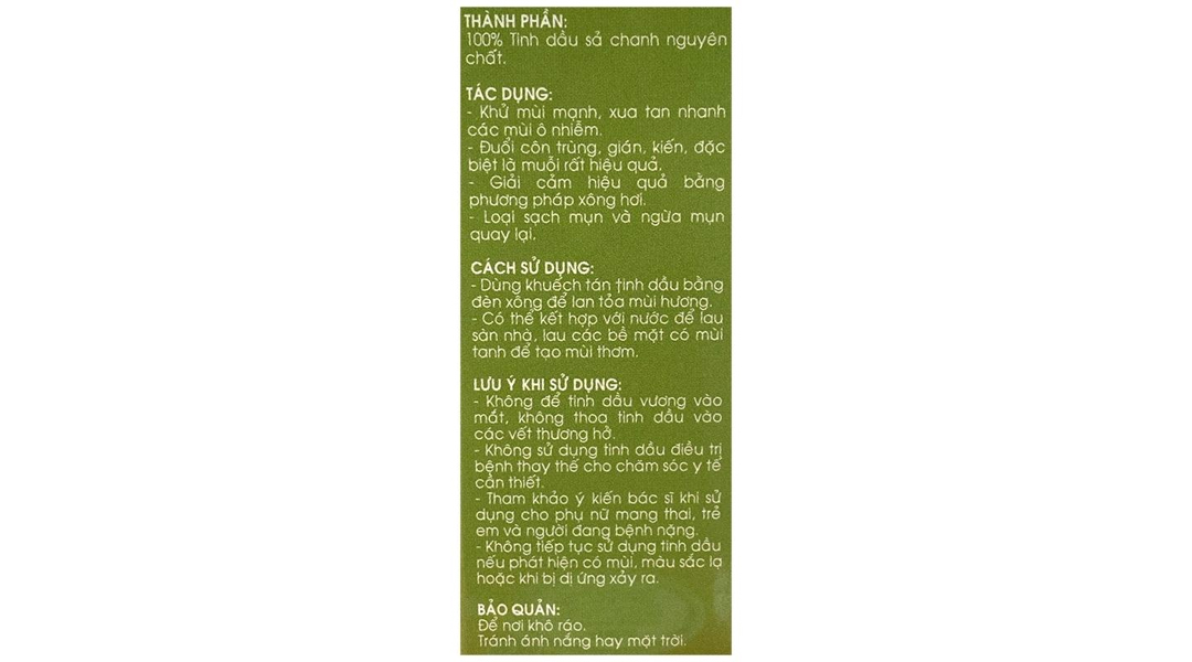 Thành phần100% tinh dầu sả chanh nguyên chất