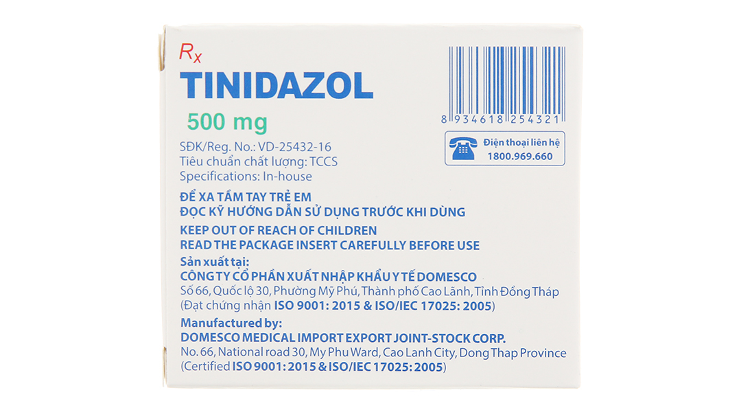 Tinidazol Domesco 500mg dự phòng và trị nhiễm khuẩn (1 vỉ x 4 viên)