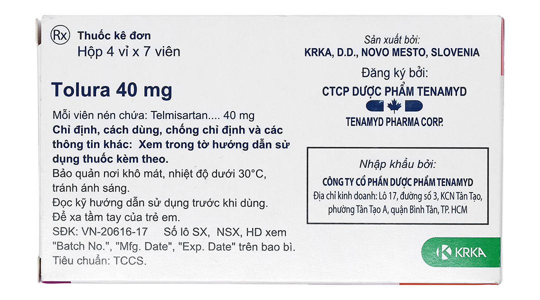 Tolura 40mg trị tăng huyết áp (4 vỉ x 7 viên)