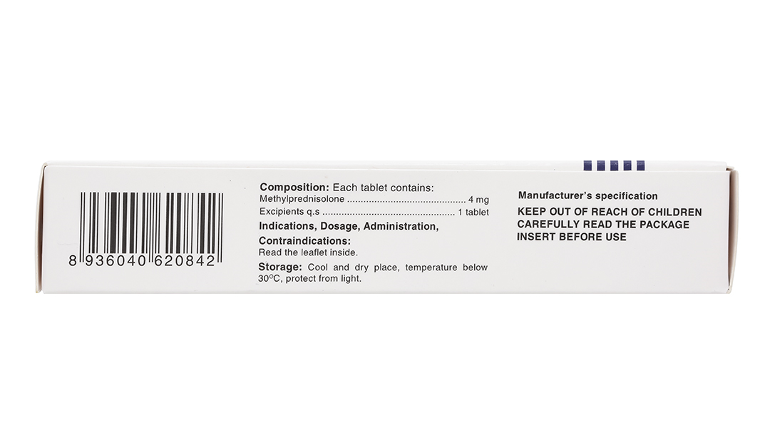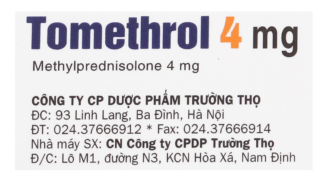 Mỗi viên nén Tomethrol 4mg chứa: Methylprednisolon 4mg.