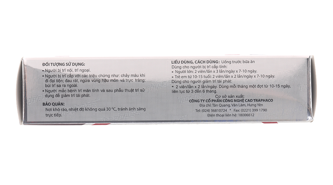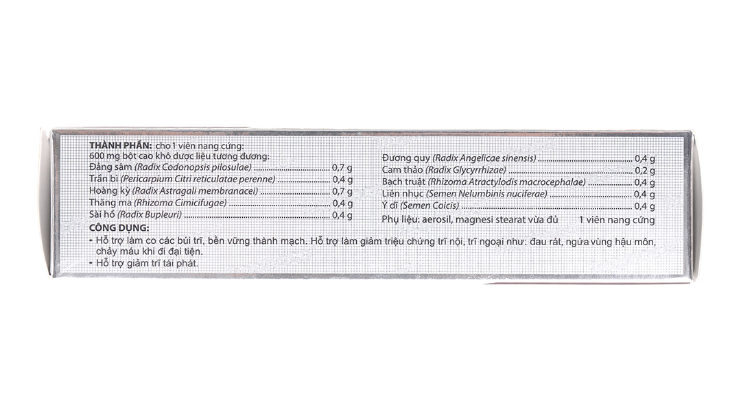 Công dụngHỗ trợ làm co búi trĩ, bền thành mạch, giảm trĩ nội, trĩ ngoại, giảm tái phát trĩ