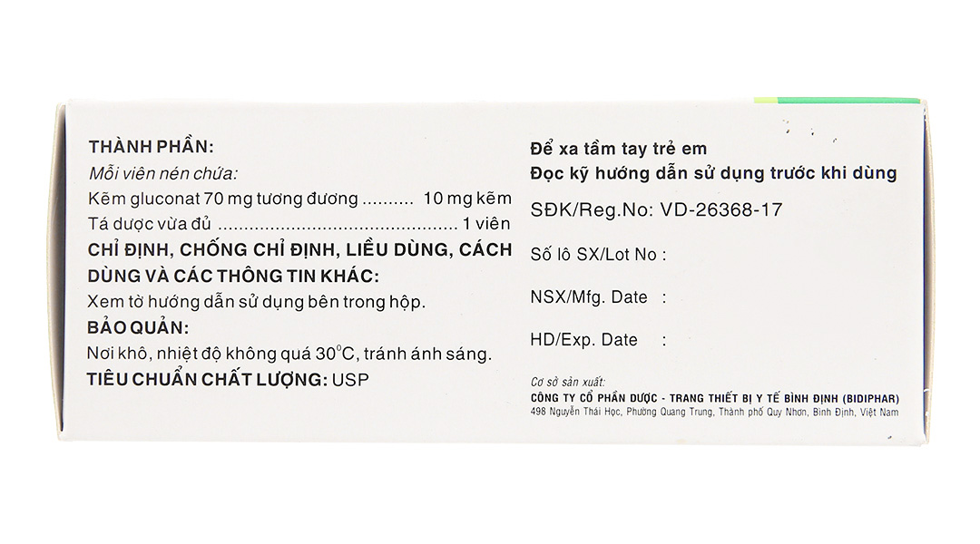 Kẽm (dưới dạng Kẽm gluconat 70mg) 10mg.