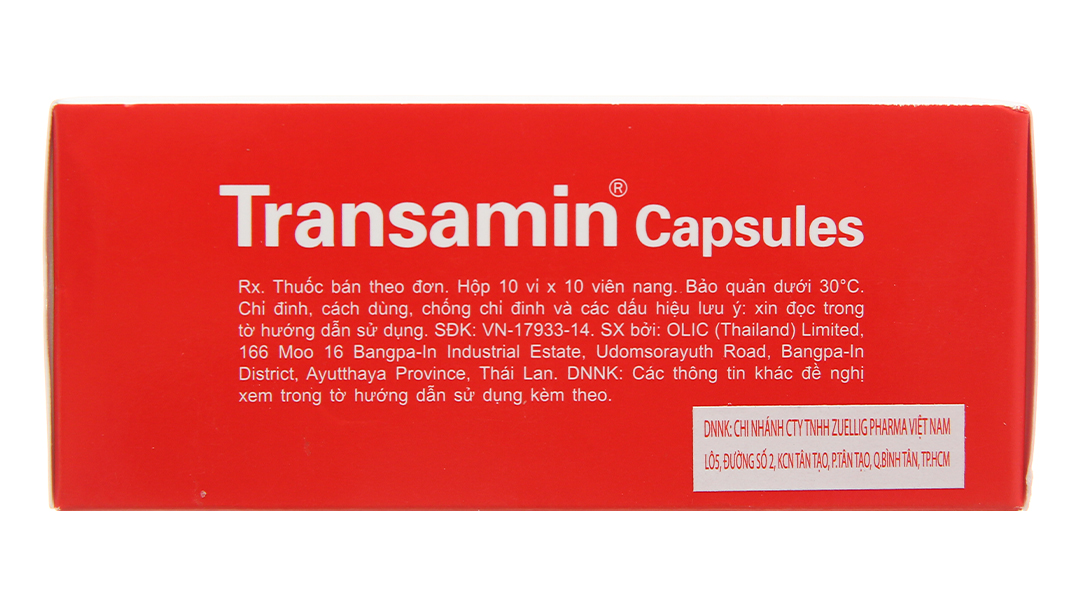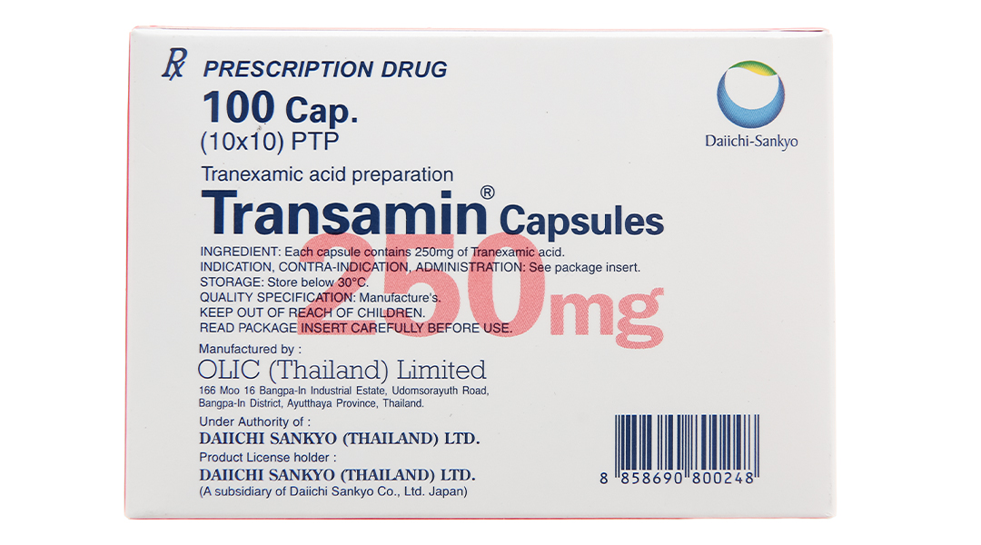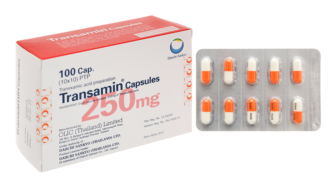 Transamin viên nang mỗi viên chứa 250mg acid tranexamic (JP).