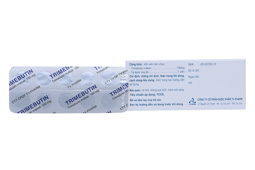 Trimebutin TV.Pharm 100mg trị các chứng rối loạn chức năng tiêu hóa (10 vỉ x 10 viên)