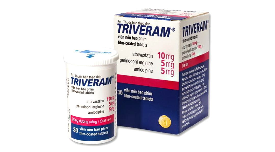 Triveram được chỉ định điều trị tăng huyết áp vô căn và/hoặc bệnh mạch vành ổn định, kết hợp với tăng cholesterol máu nguyên phát hoặc tăng lipid máu hỗn hợp, như một liệu pháp điều trị thay thế ở người lớn được kiểm soát tốt với atorvastatin, perindopril và amlodipin dùng đồng thời với cùng mức liều ở dạng kết hợp.
