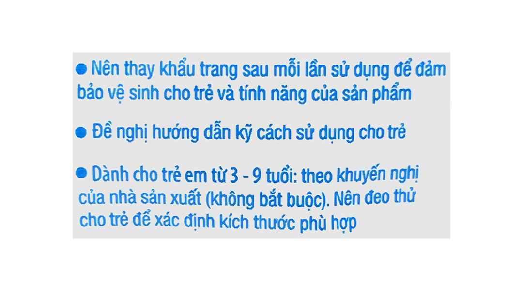 Nên thay khẩu trang sau mỗi lần sử dụng để đảm bảo vệ sinh cho trẻ và tính năng của sản phẩm.
