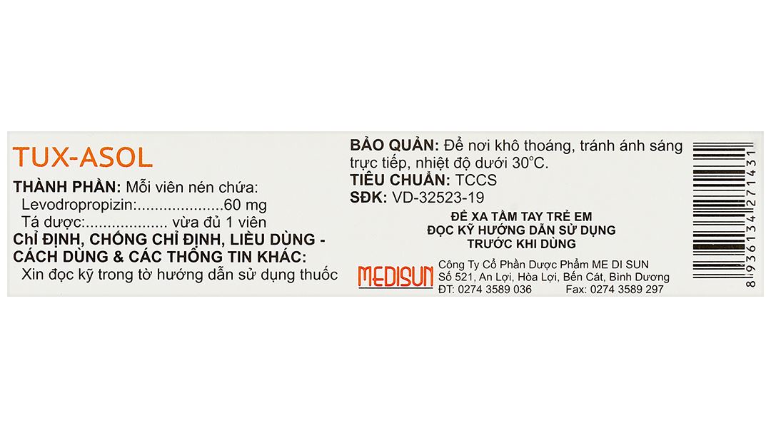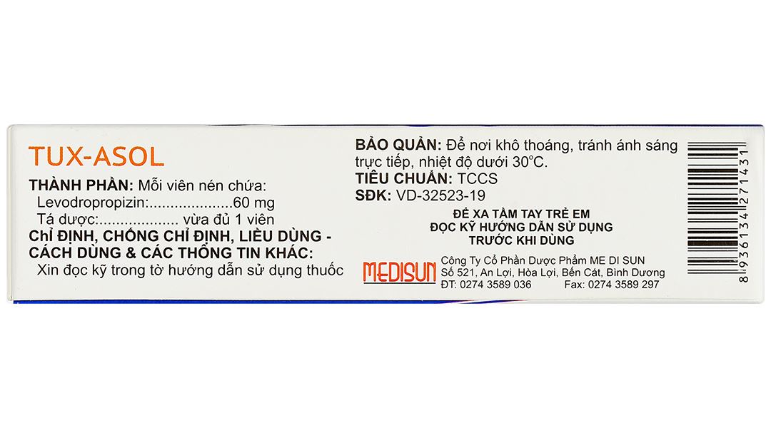 - Thành phần dược chất: Levodropropizin 60 mg.