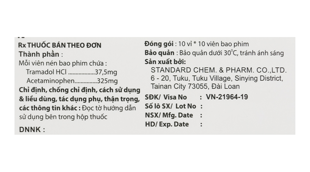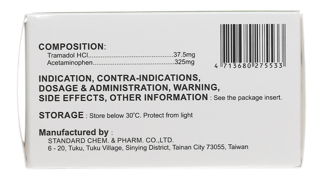 Tramadol hydroclorid 37.5mg, Acetaminophen 325mg.