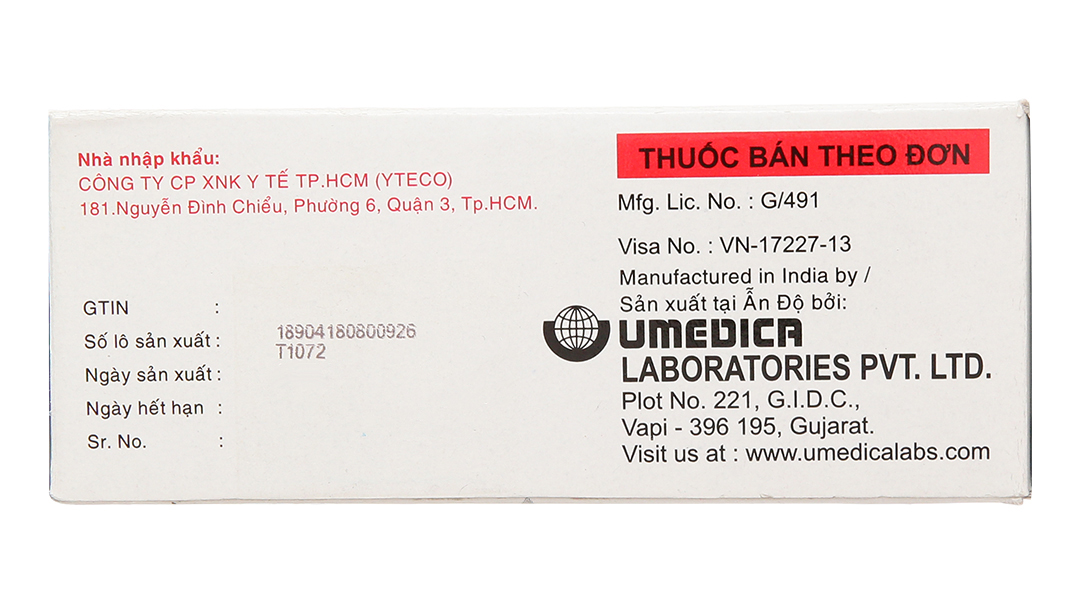 - Tá dược: Cellulose vi tinh thể, lactose, colloidal Silicon dioxid, tinh bột ngô, tween 80 [Sorbox 80], ethyl cellulose, magnesi stearat, talc, natri lauryl sulfat, natri starch glycolate, croscarmellose natri, Wincoat WT-AQ-1001 trắng.