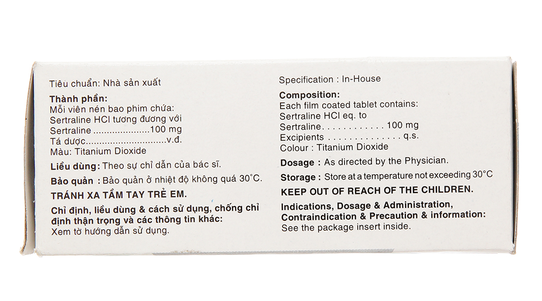 - Sertraline HCL tượng đương Sertraline: 100mg.