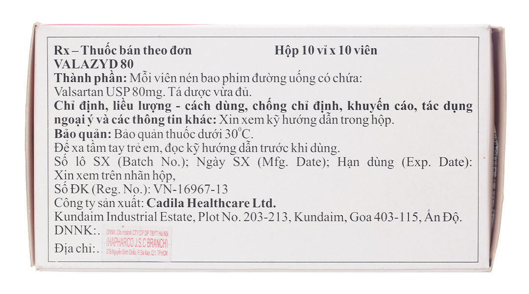 Một viên Valazyd 80 chứa: Valsartan 80,00mg.