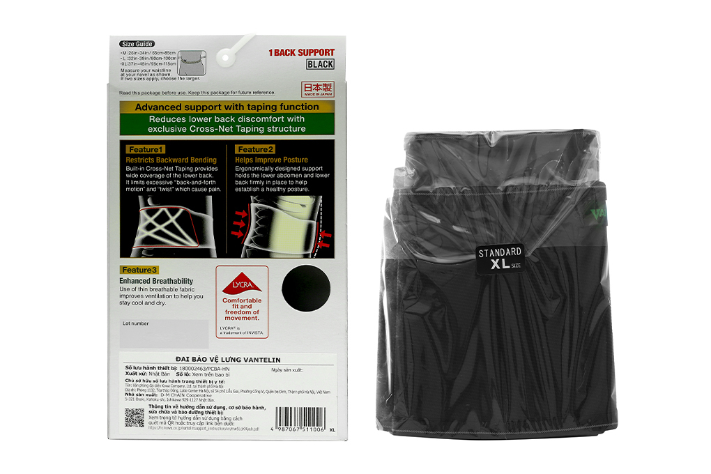 Hộp 1 đai bảo vệ cột sống Vantelin size XL.