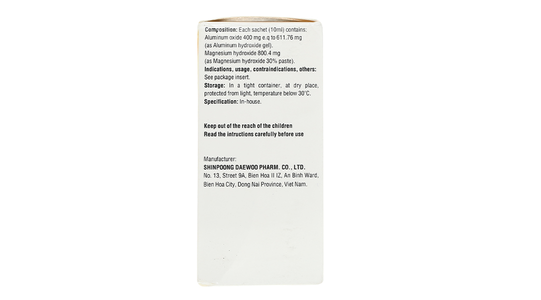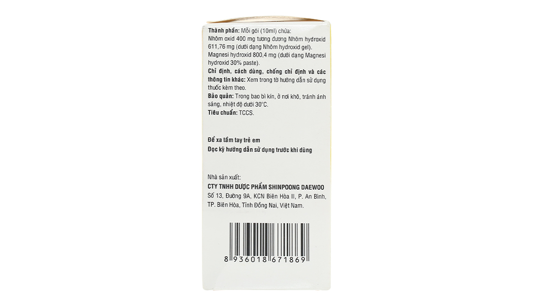 – Magnesi hydroxid 800,4 mg (dưới dạng Magnesi hydroxid 30% paste)