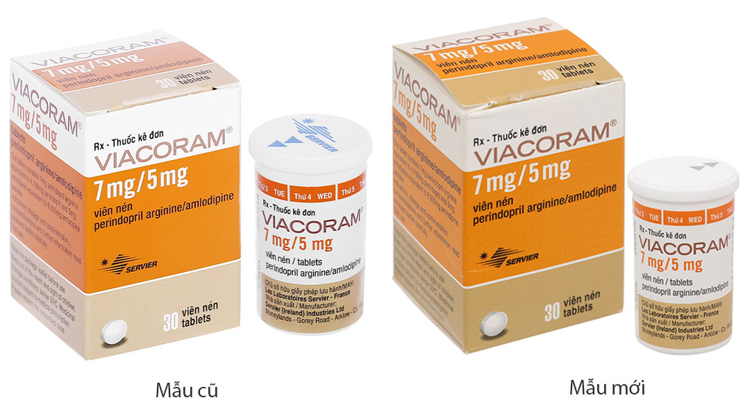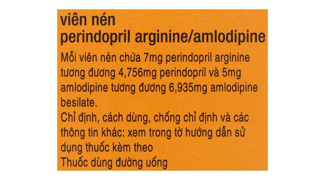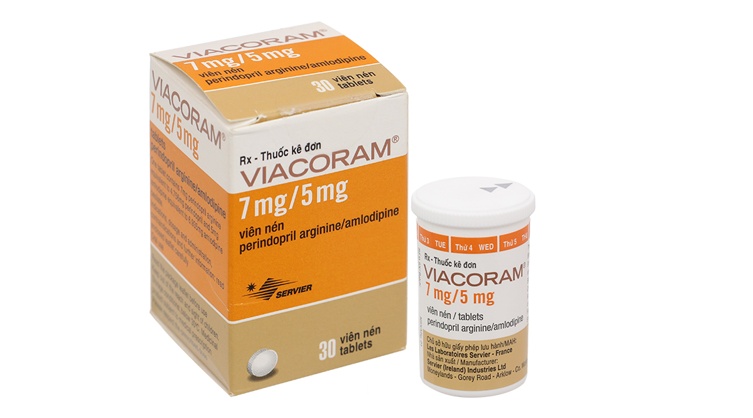 Viacoram 7mg/5mg: Mỗi viên nén chứa 4,756mg perindopril tương ứng với 7mg perindopril arginin và 6,935mg amlodipin besilat tương ứng với 5mg amlodipine.