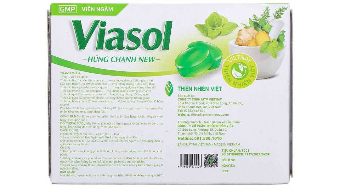 - Viên ngậm Viasol Húng Chanh New là sản phẩm đến từ thương hiệu uy tín VietNat, được chiết xuất hoàn toàn từ các tinh dầu thiên nhiên, mang lại hiệu quả trong việc hỗ trợ điều trị các vấn đề về đường hô hấp.