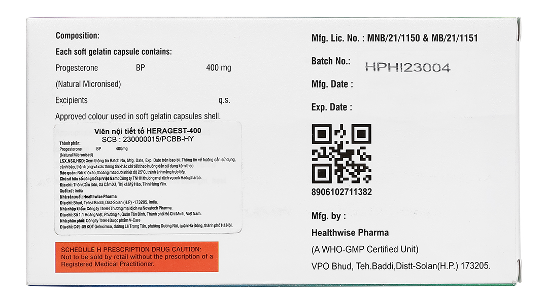 Viên nội tiết tố Heragest-400 hỗ trợ dự phòng sảy thai, vô sinh nữ 1 viên