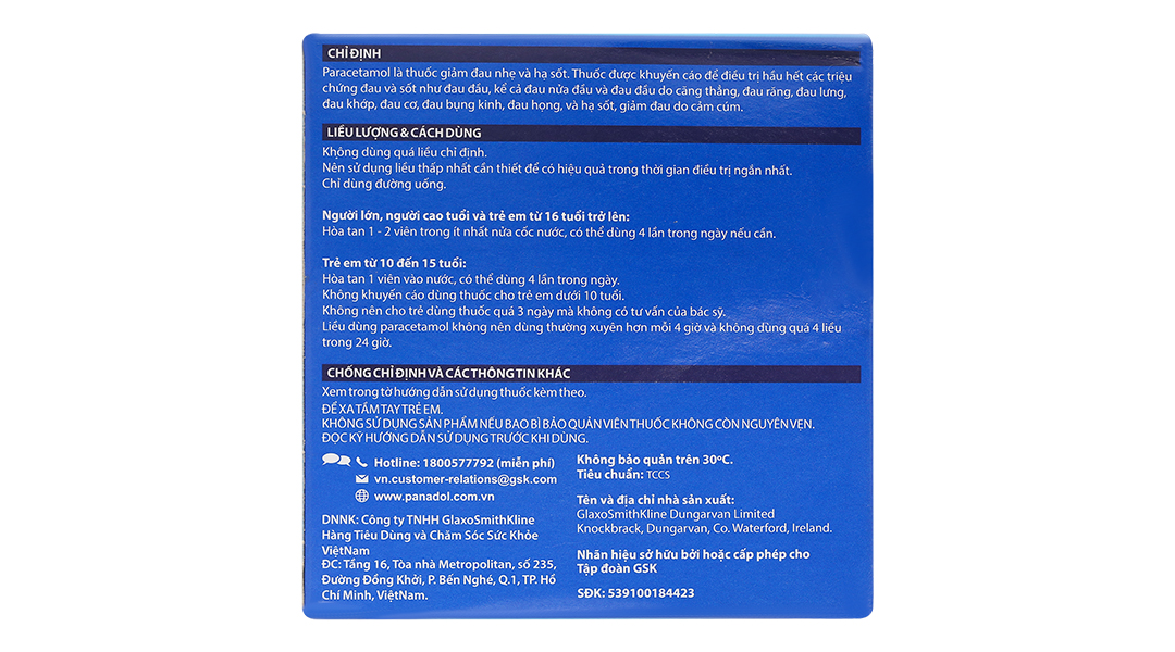 - Hoạt chất: Paracetamol 500 mg.
